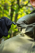- Uni gekleurde jas met capuchon.