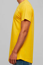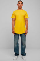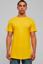 T-shirt van Urban Classics in het geel. De teen heeft een lange pasvorm en heeft een ronde kraag en onderkant. Kwaliteit: 100% katoen