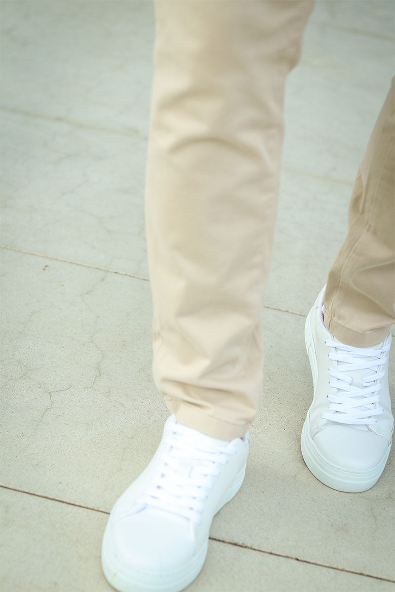 Deze Bowie chino voor mannen is een tijdloze aanvulling op je garderobe. Dankzij de slim fit en de lage taille zit deze broek comfortabel en modern. Het geweven materiaal is sterk en duurzaam, wat zorgt voor een nette uitstraling die perfect is als smart-casual alternatief voor jeans. De broek is voorzien van een ritssluiting en handige zakken aan zowel de voorkant als achterkant.