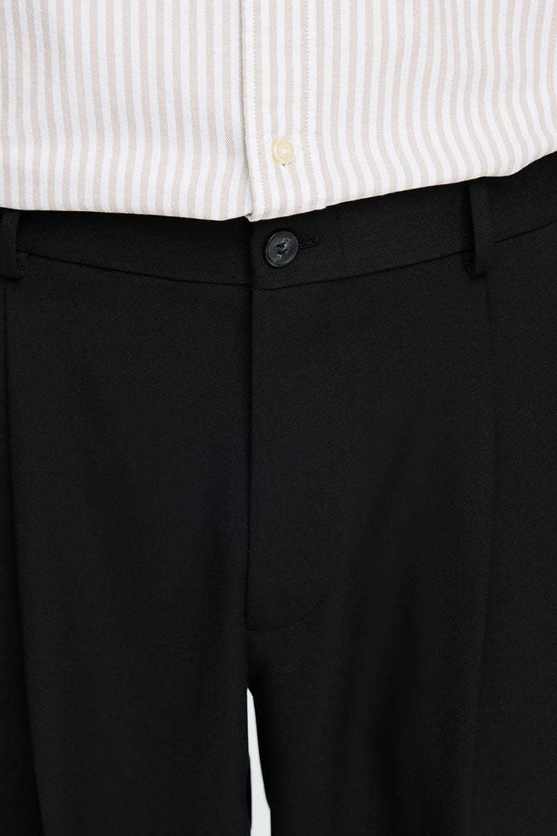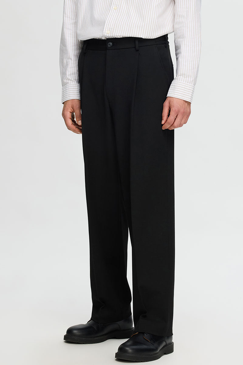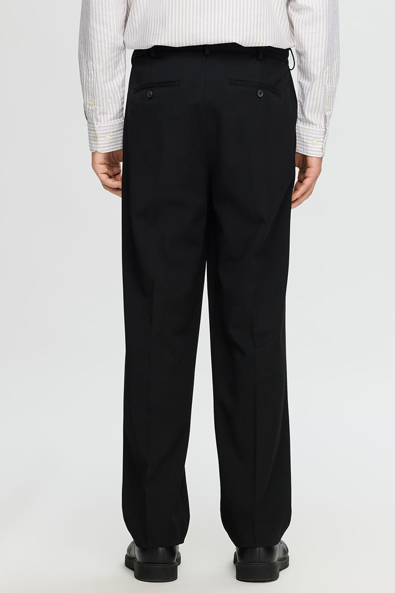Straight Plisse Trousers Black
