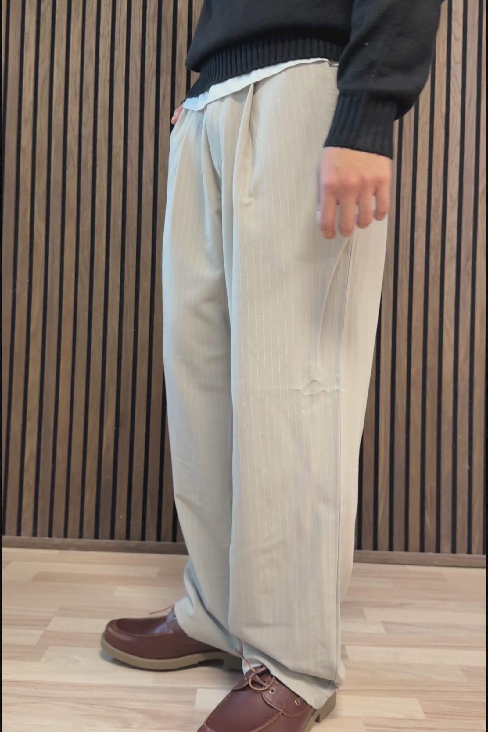 Bill Bamford Pleated Relaxed Fit Chino Mourning Dove Stripe