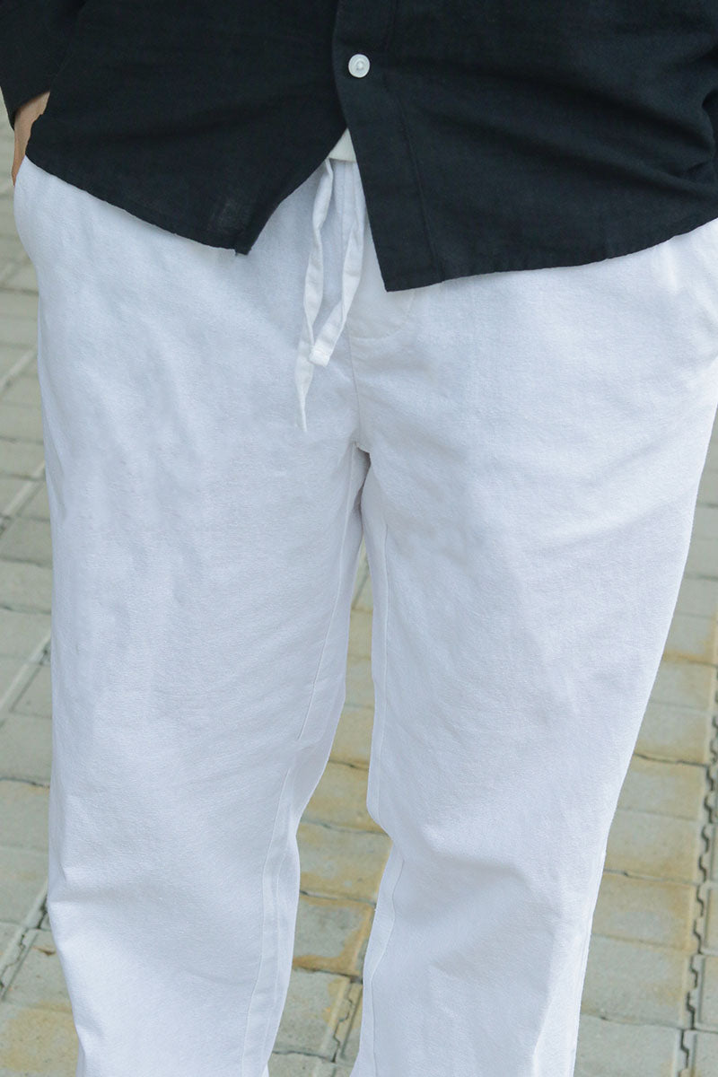 Sinus Loose Cotton Linen Pants Bright White