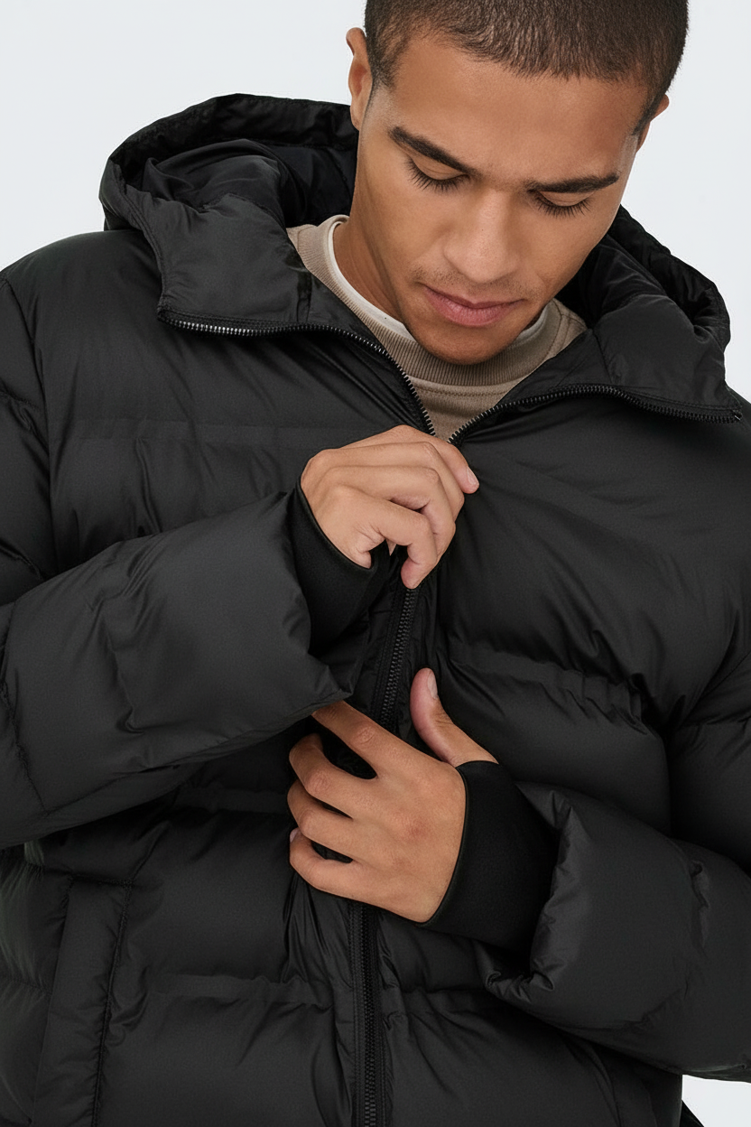 - De jas heeft twee zakken aan de voorkant en geribde boorden bij de mouwen