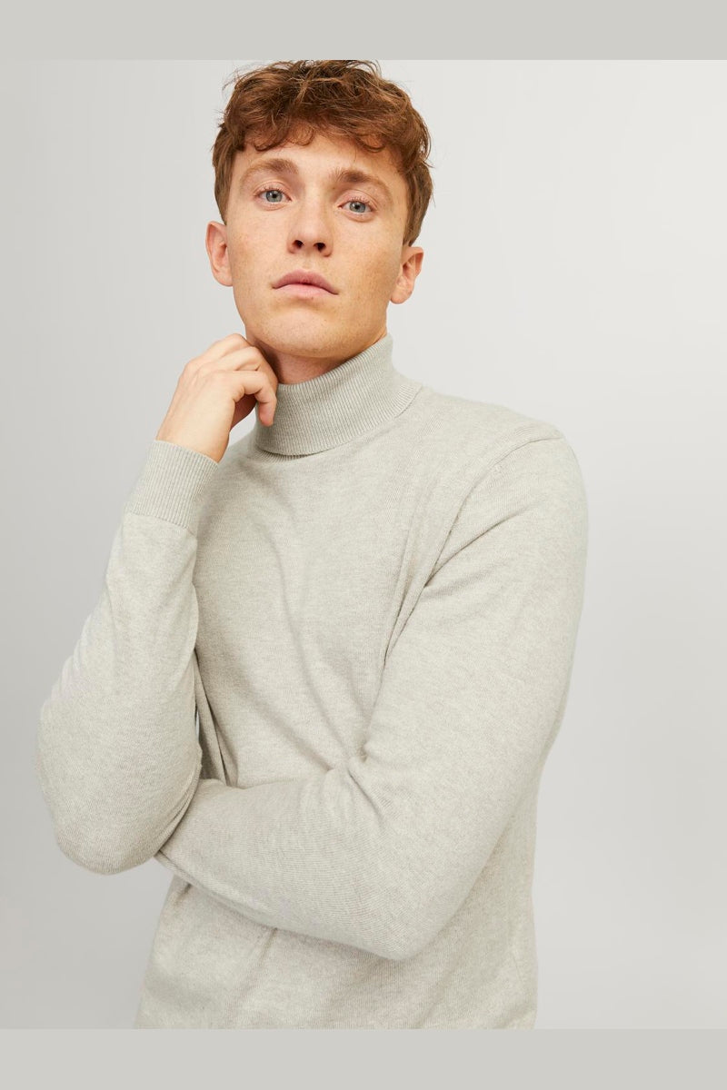 Dane LS Structure Knit Roll Neck Light Grey Melange