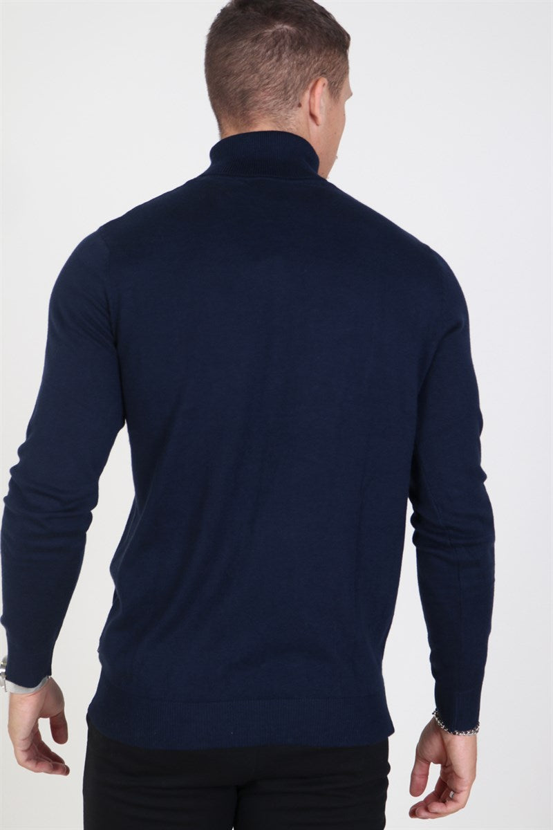 Tray LS Merino Knit Roll Neck Navy Blazer