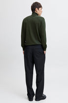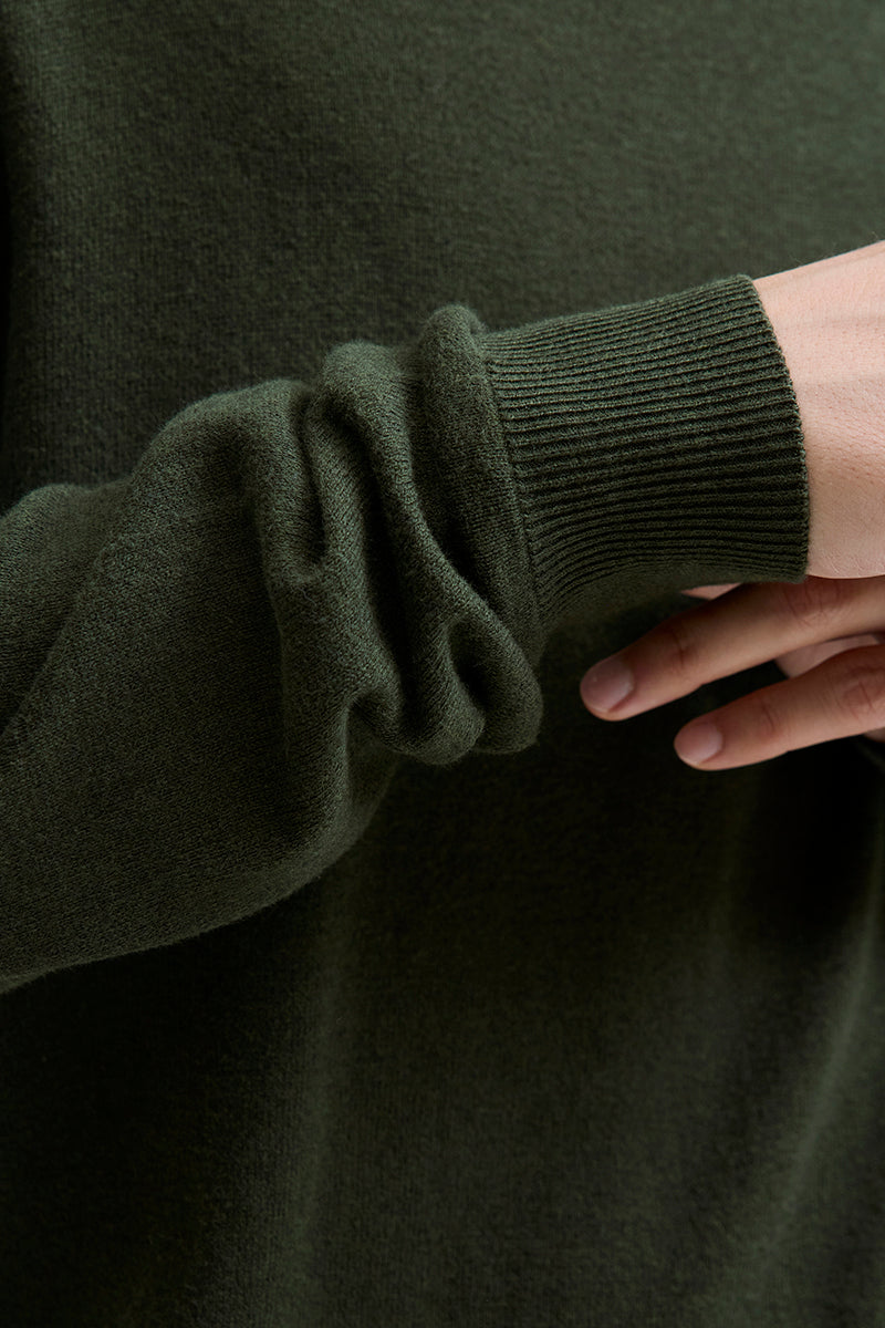 - De trui heeft geribde boorden aan de mouwen en onderkant.