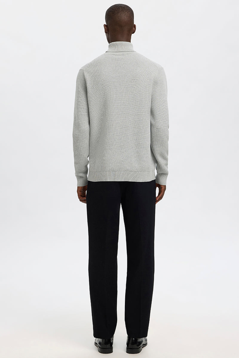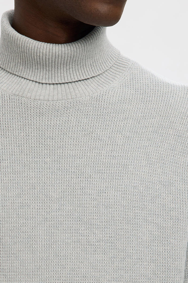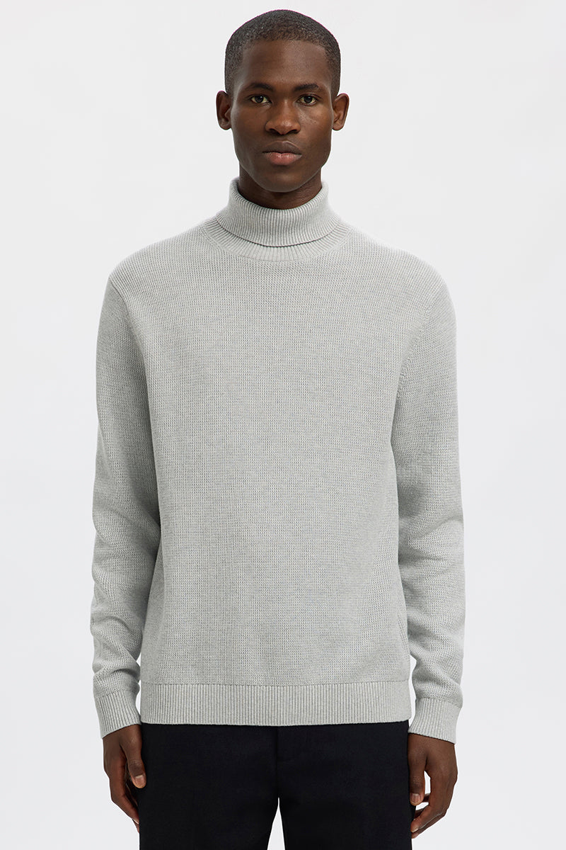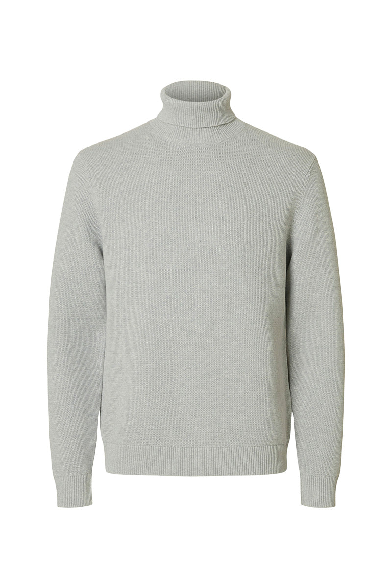 Dane LS Structure Knit Roll Neck Light Grey Melange