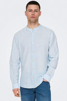 Caiden LS Mao Stripe Linen Shirt Cashmere Blue