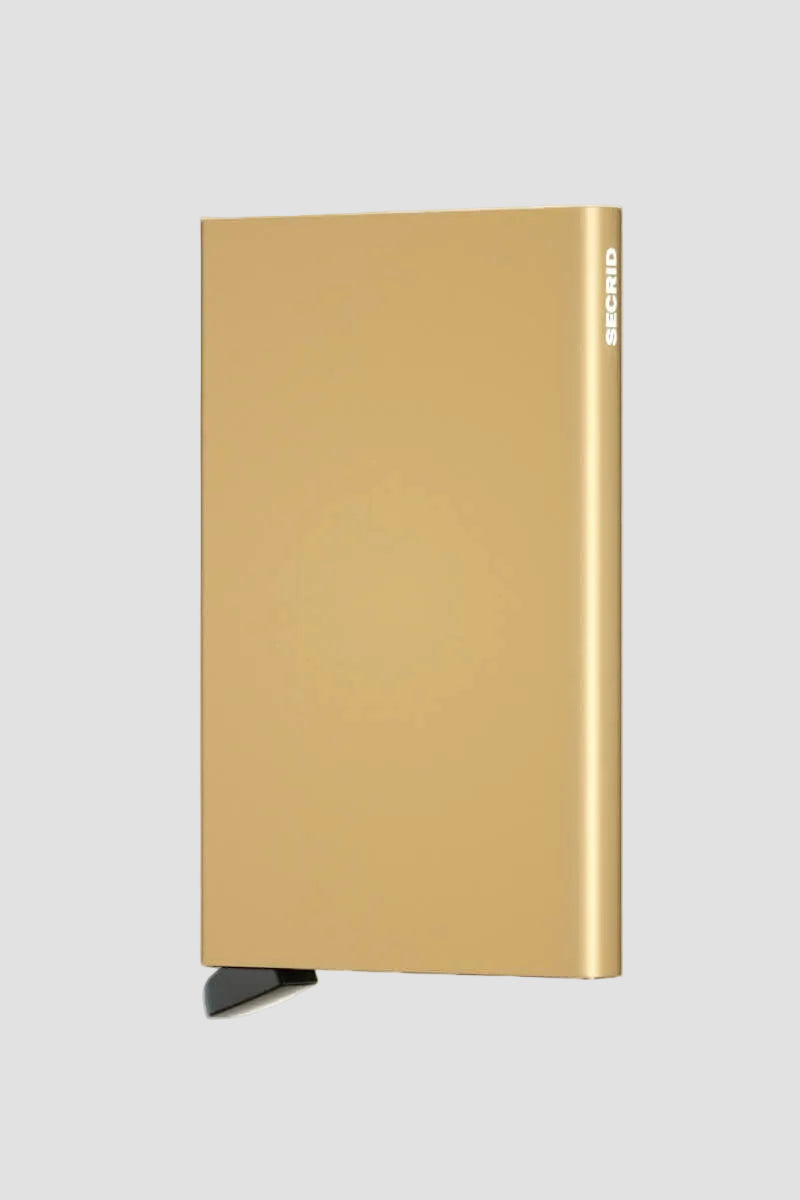 Secrid kaarthouder in een goud design. De kaarthouder kan tot op 5 kaarten houden, die snel er uit gedrukt kan worden De portomonnee is sterk en heeft RFID scanning. Gemaakt van aluminium. Kaartmaat: 10,2x6,3x0,8 cm en een gewicht van 40 g.