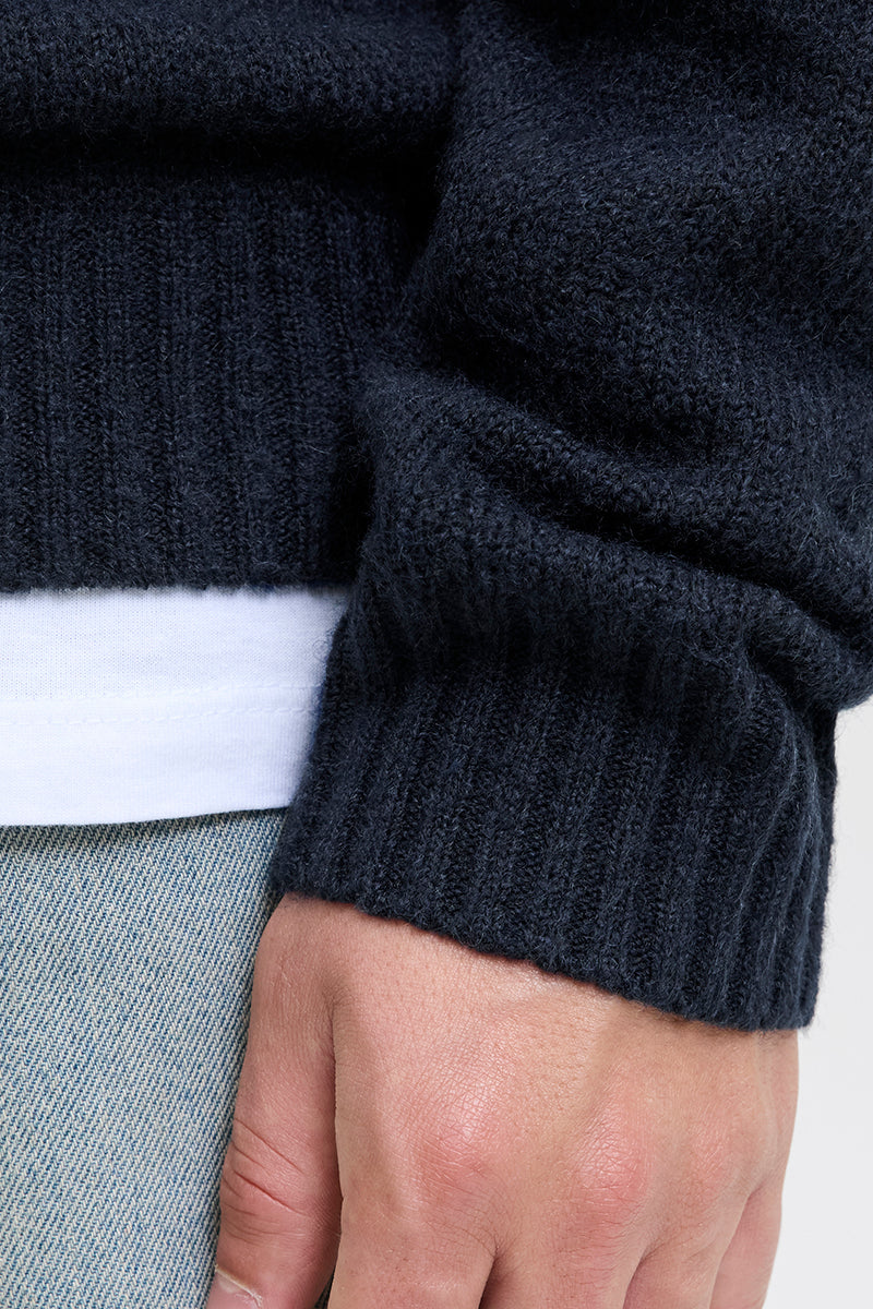 - Donkerblauwe trui met lange mouwen