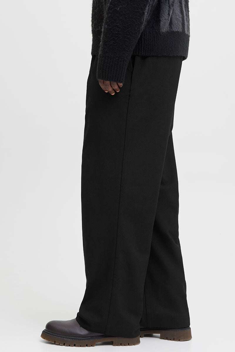 - Broeken met trekkoord in de taille plus haak‑en‑oogsluiting en ritssluiting
