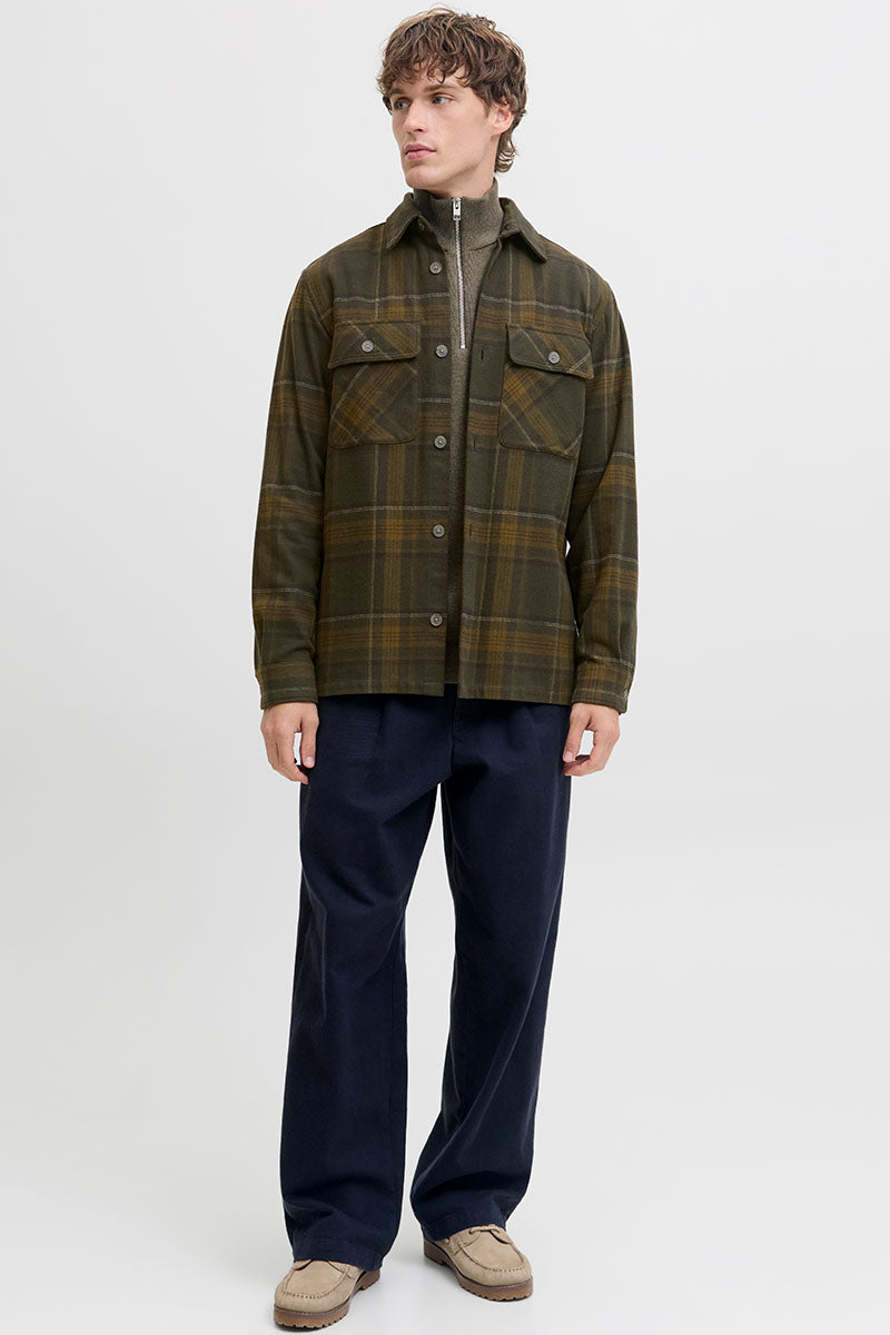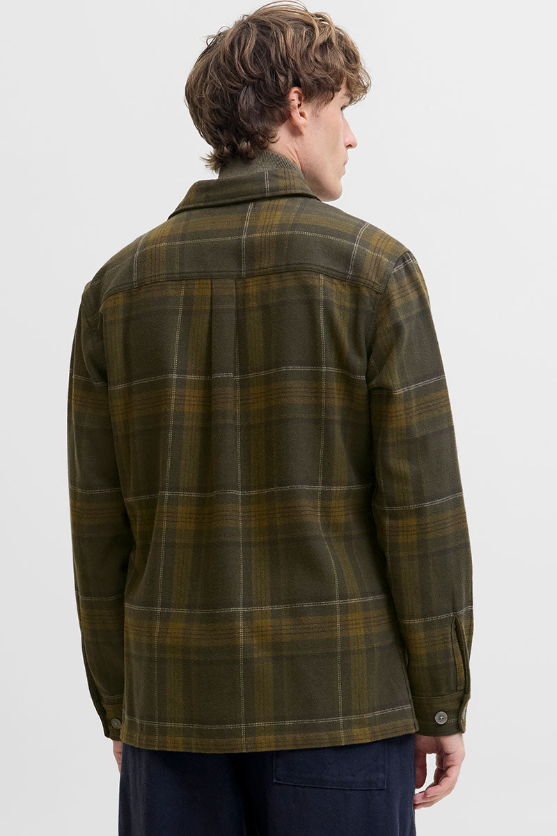- Donkergroene overshirt met lange mouwen in geruit patroon