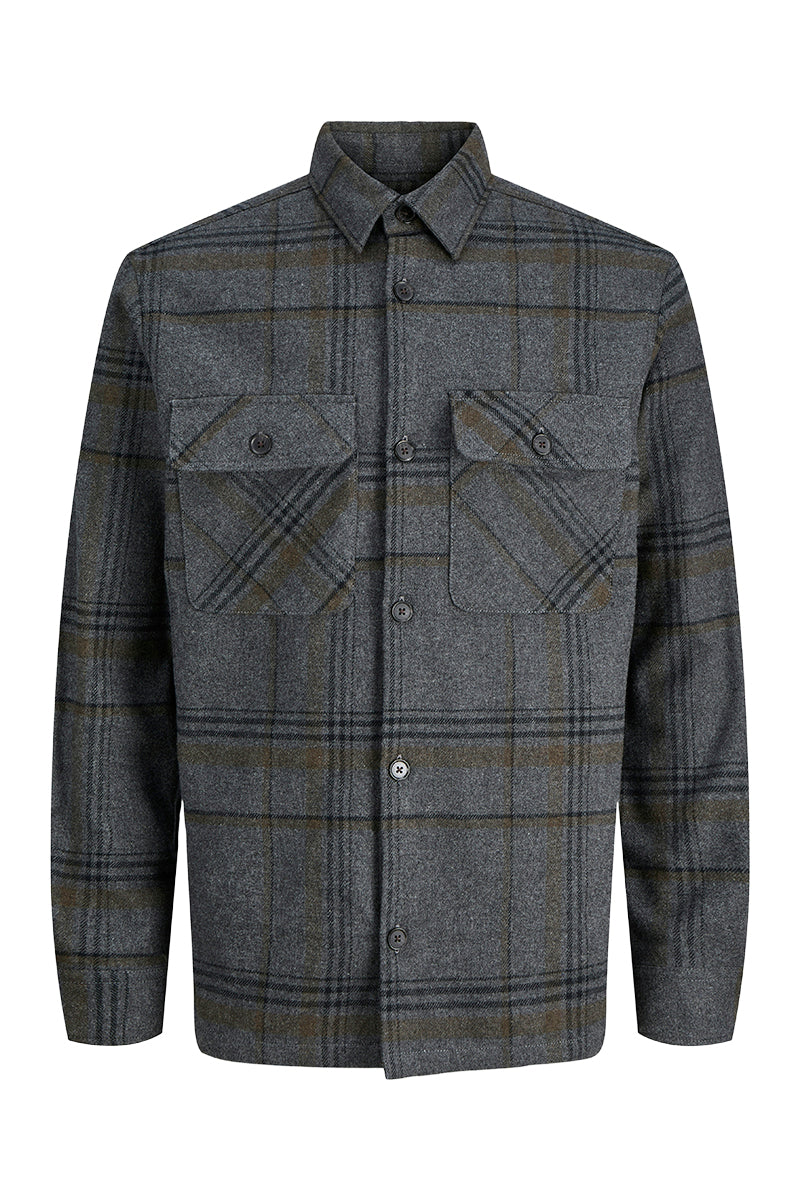 Rayle Melange Check LS Overshirt Dark Grey