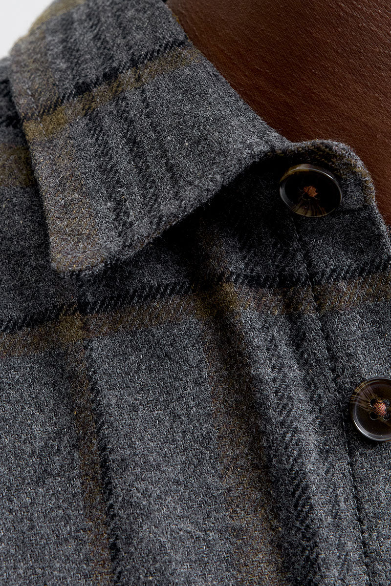 - Donkergrijze geruite overshirt met lange mouwen