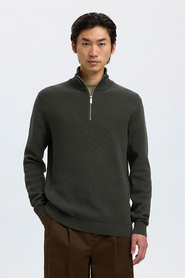 Dane LS Structure Knit Kalf Zip Deep Forest