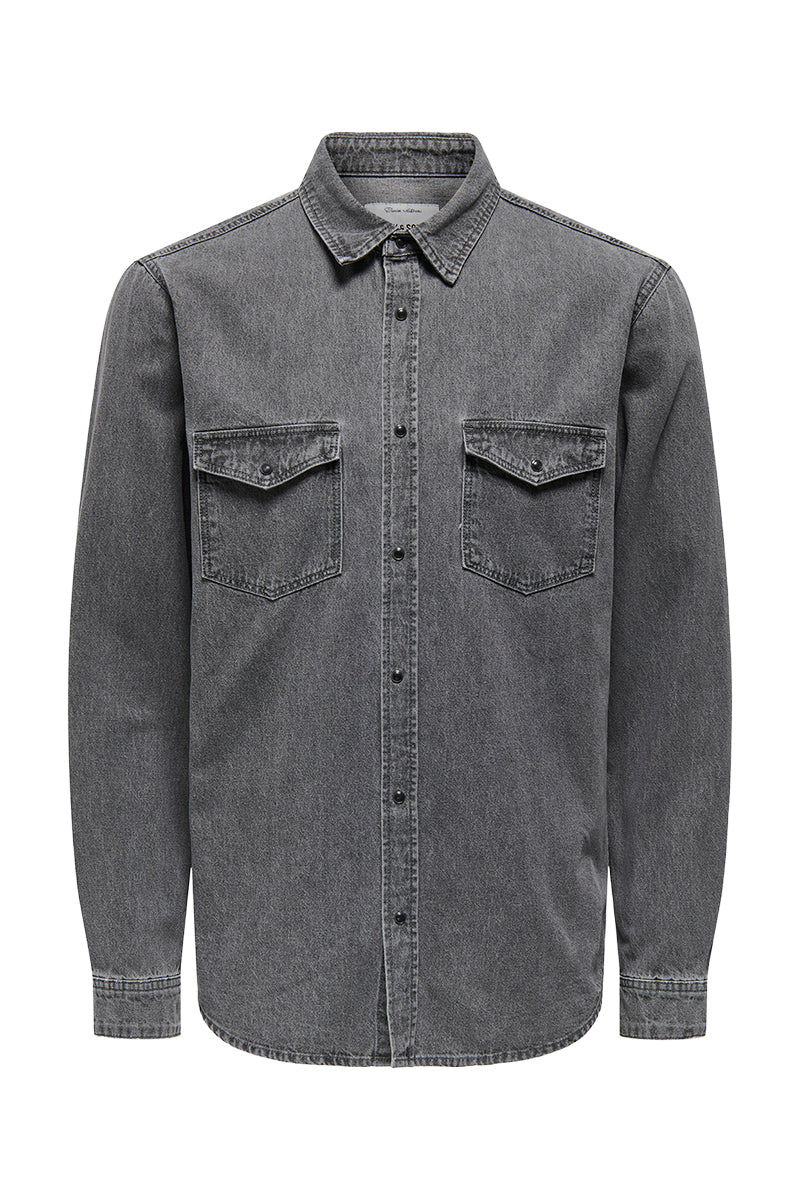 Bane Regular Fit Denim Shirt Light Grey Denim