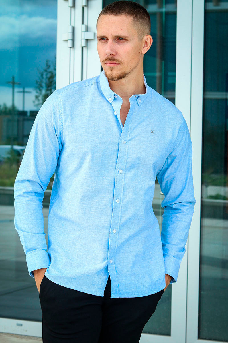 Oxford Stretch Plain L/S Light Blue