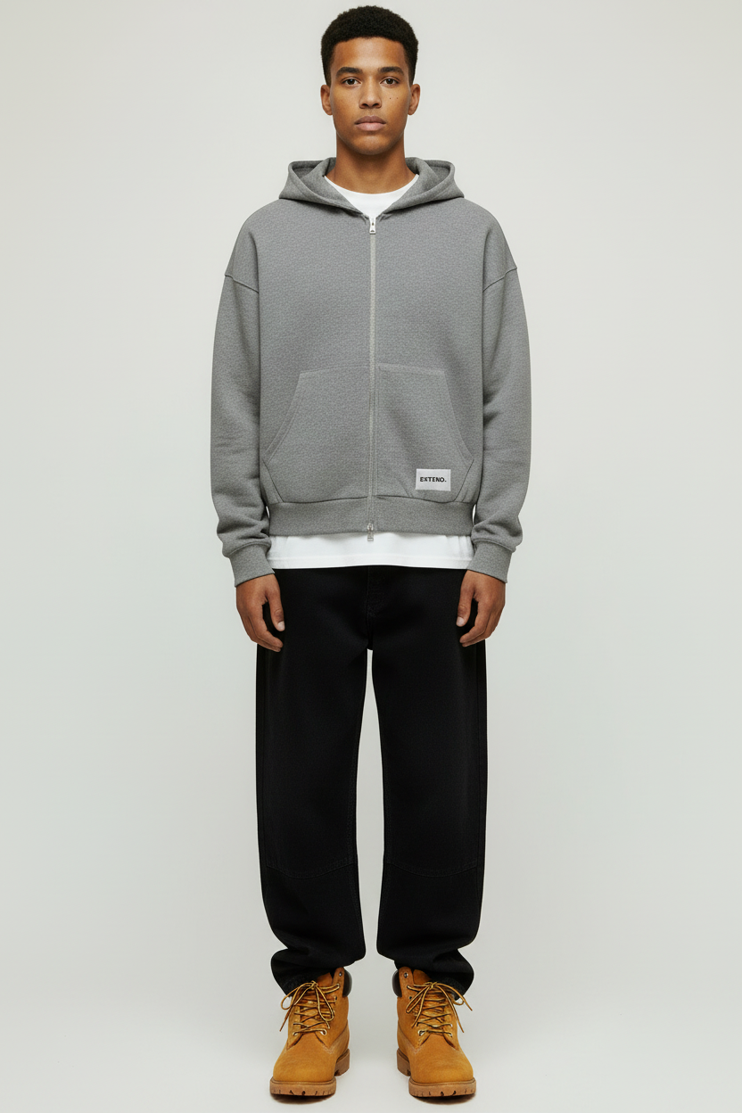 Deze boxy fit hoodie combineert comfort met een moderne, casual uitstraling. De capuchon en lange mouwen met dropped shoulders zorgen voor een relaxte pasvorm, terwijl de rits aan de voorkant gemakkelijk aan- en uit te trekken is. Gemaakt van een mix van katoen, gerecycled polyester en elastaan, voelt het zacht aan en biedt het voldoende stretch voor bewegingsvrijheid. De medium grey melange kleur geeft deze trui een tijdloze en veelzijdige look die eenvoudig te combineren is.