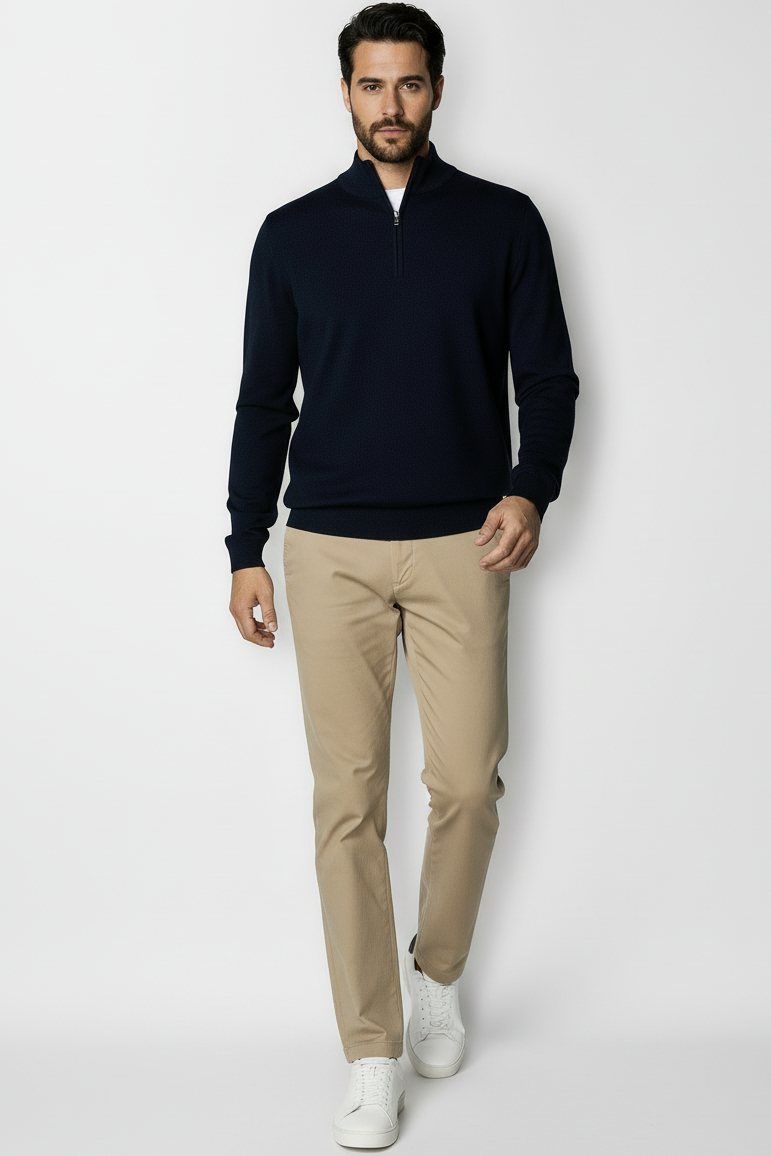 Tray LS Merino Knit Half Zip Medium Grey Melange