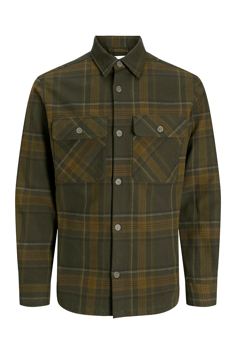 - Donkergroene overshirt met lange mouwen in geruit patroon