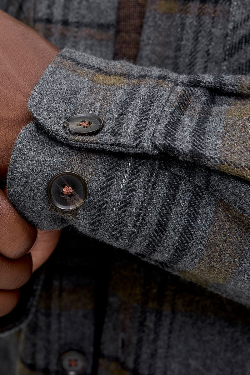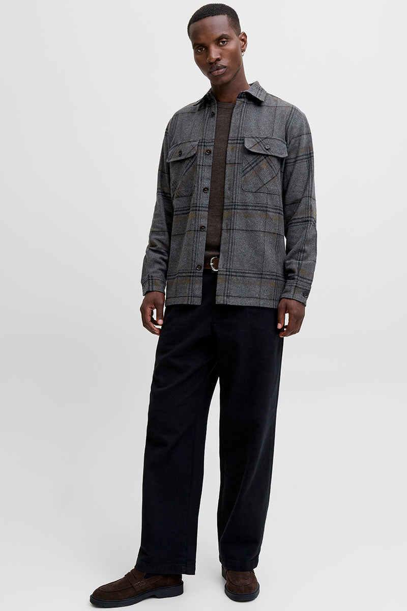 Rayle Melange Check LS Overshirt Dark Grey