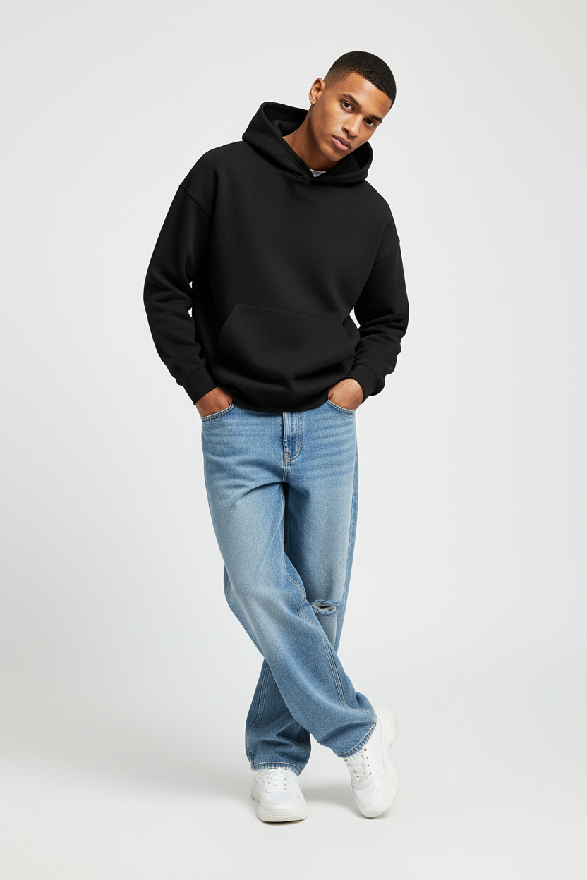 - De hoodie heeft twee zakken aan de voorkant en is gemaakt van een zware stof