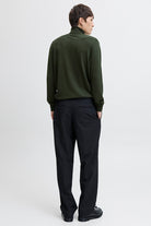 - De trui heeft geribde boorden aan de mouwen en onderkant.