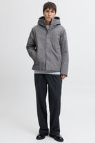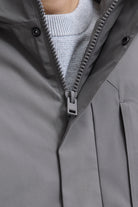 - De jas heeft 2 schuine voorzakken en een borstzak. De jas is wind- en waterafstotend