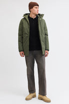 - De jas heeft 2 schuine voorzakken en een borstzak. De jas is wind- en waterafstotend