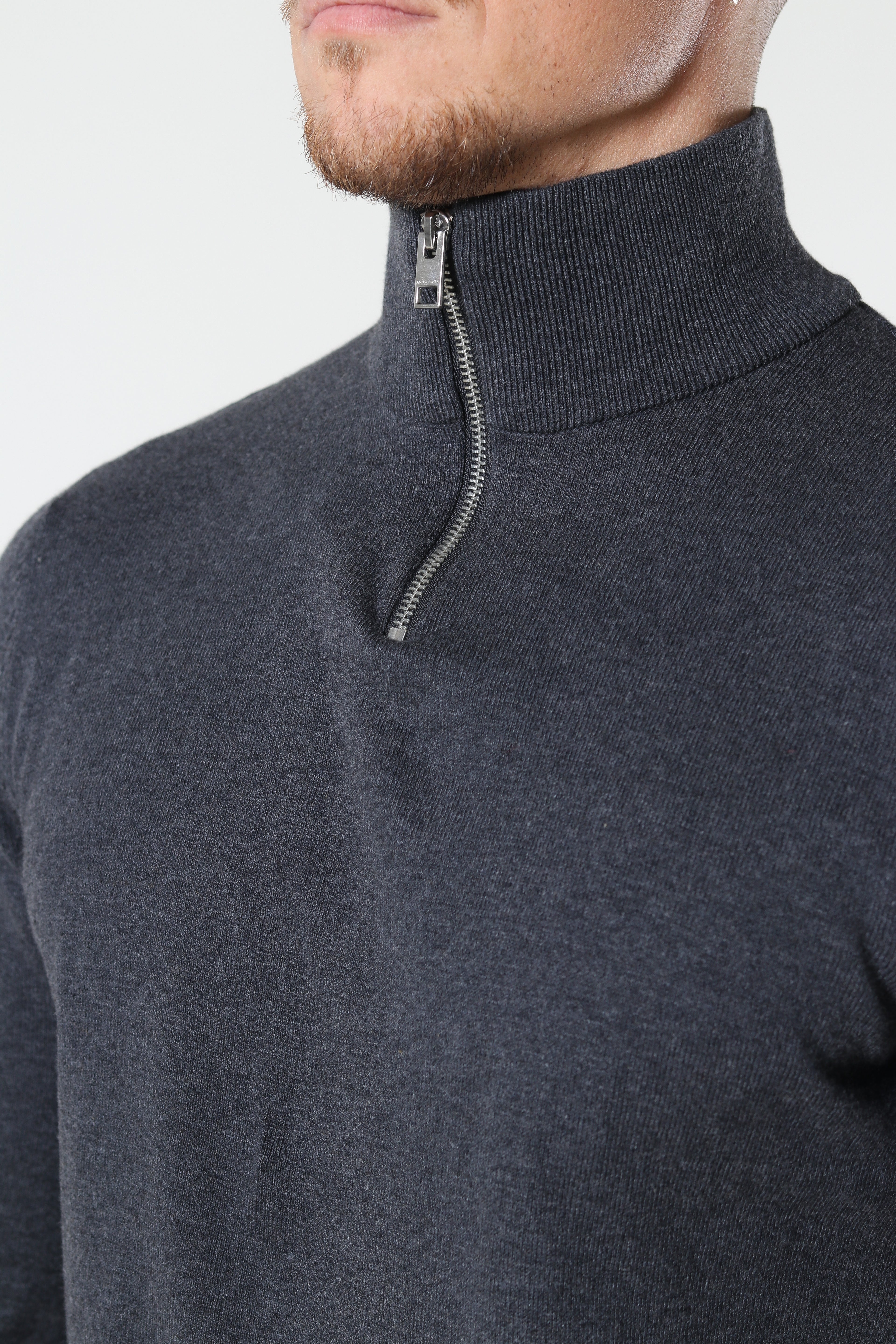 JJEEMIL KNIT HALF ZIP NOOS Dark Grey Melange
