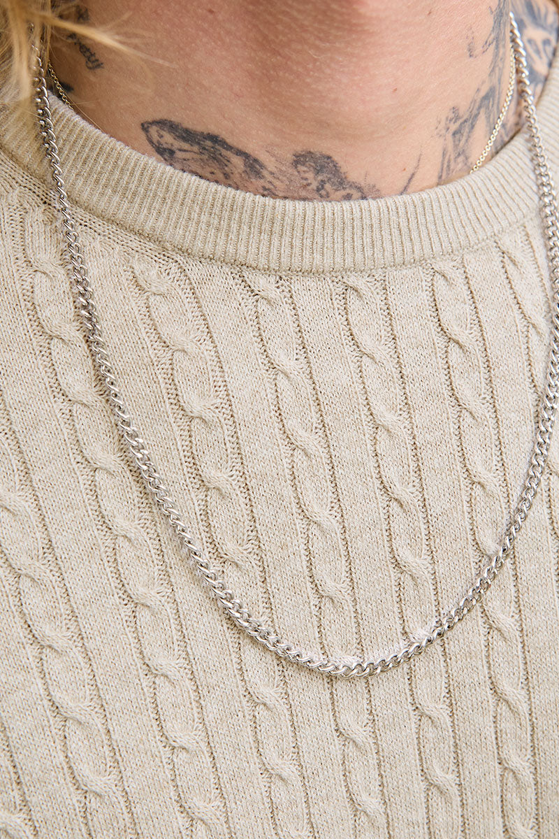 Emil Knit Cable Crew Neck Dark Grey Melange