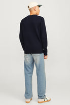 - Donkerblauwe trui met lange mouwen in structuur fit