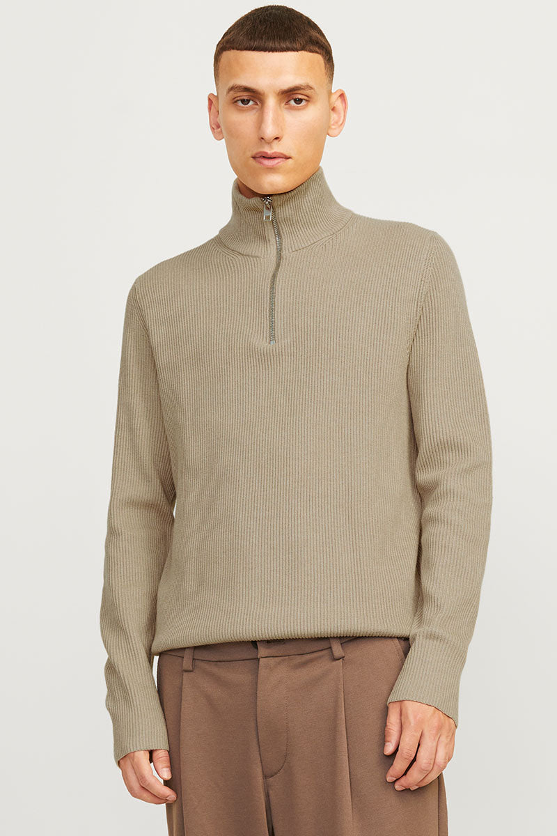 JJEEMIL KNIT HALF ZIP NOOS Oatmeal