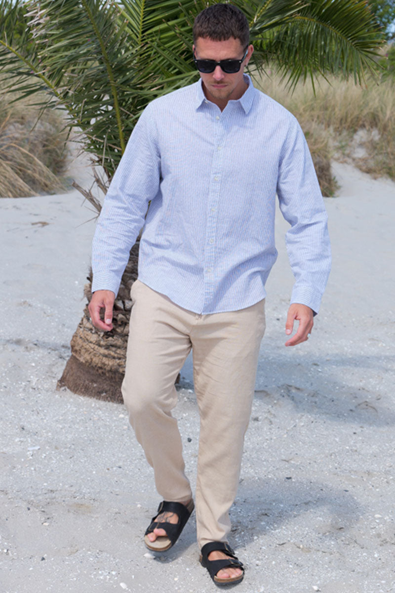 Onze linnen collectie op 2trendy kan gebruikt worden voor elke gelegenheid, maar is vooral geschikt voor de vele feestelijke zomerse evenementen, of voor de warme vakantiebestemming. Of het nu een casual tuinfeest is, een klassieke barbecueavond, of gewoon een uitstapje naar het strand, je bent verzekerd van hoogwaardige kleding uit onze linnen collectie. Probeer bijvoorbeeld een linnen overhemd met lange mouwen in combinatie met een van onze linnen broeken met een paar sandalen. Je kunt ook helemaal casual gaan en een van de linnen shirts met korte mouwen combineren met een van onze linnen shorts. Er zijn opties genoeg - wat ze allemaal gemeen hebben is dat linnen ontzettend comfortabel, ademend en stijlvol is. We hebben zowel effen, gestreepte en gedessineerde linnen overhemden, als linnen broeken en shorts in aardse kleuren, zodat je altijd jouw eigen stijl kunt vinden.