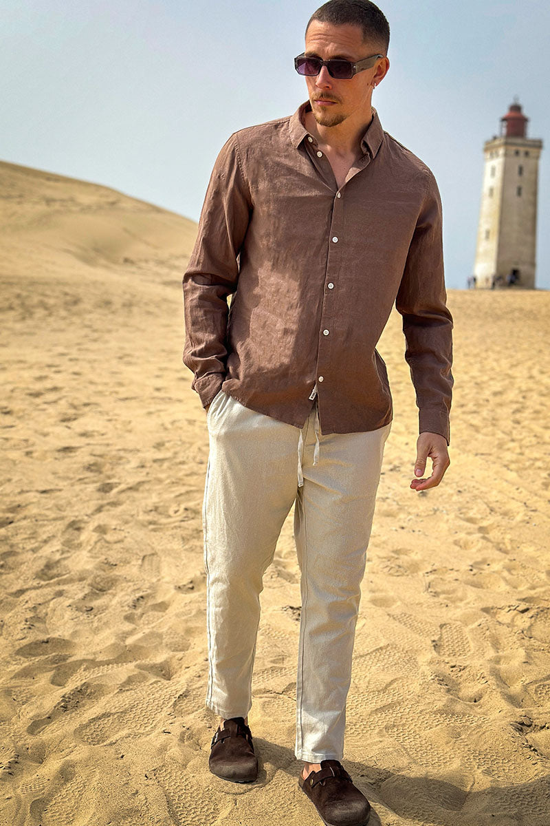 Onze linnen collectie op 2trendy kan gebruikt worden voor elke gelegenheid, maar is vooral geschikt voor de vele feestelijke zomerse evenementen, of voor de warme vakantiebestemming. Of het nu een casual tuinfeest is, een klassieke barbecueavond, of gewoon een uitstapje naar het strand, je bent verzekerd van hoogwaardige kleding uit onze linnen collectie. Probeer bijvoorbeeld een linnen overhemd met lange mouwen in combinatie met een van onze linnen broeken met een paar sandalen. Je kunt ook helemaal casual gaan en een van de linnen shirts met korte mouwen combineren met een van onze linnen shorts. Er zijn opties genoeg - wat ze allemaal gemeen hebben is dat linnen ontzettend comfortabel, ademend en stijlvol is. We hebben zowel effen, gestreepte en gedessineerde linnen overhemden, als linnen broeken en shorts in aardse kleuren, zodat je altijd jouw eigen stijl kunt vinden.