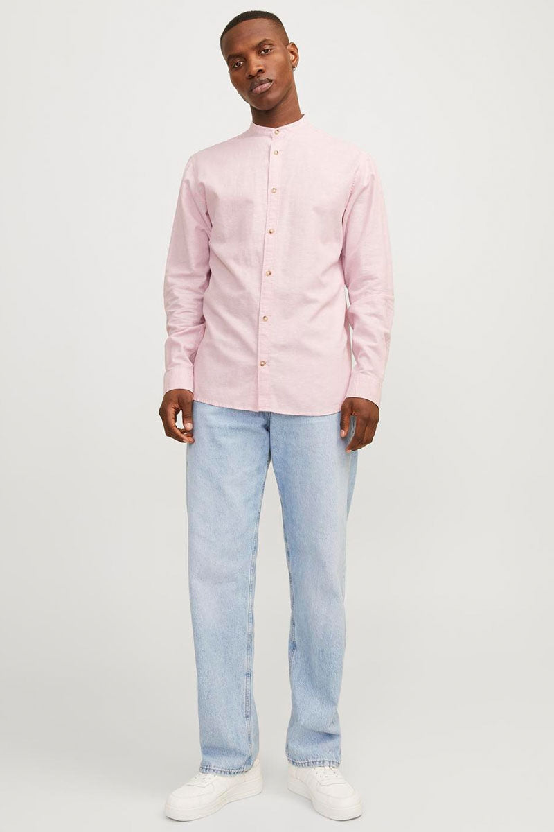 - Twill overhemd met bandkraag en lange mouwen