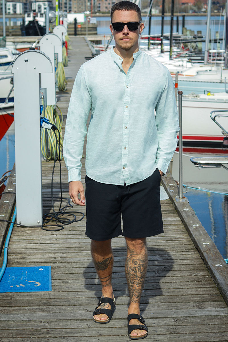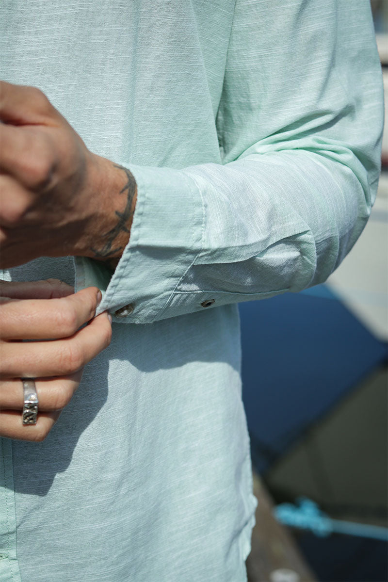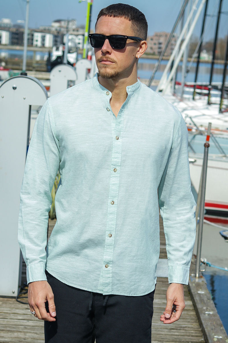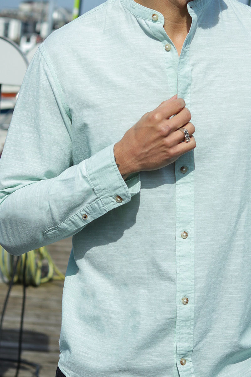- Overhemd met opstaande kraag in lichtgewicht materiaal.