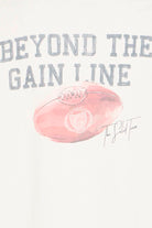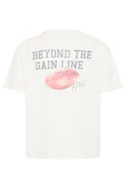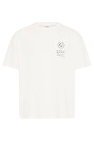 • De t‑shirt heeft een grote print op de rug en een kleiner print en borduursel op de borst