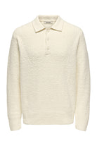 • De trui heeft een gebreide kraag en 3 knopen bovenaan. Daarnaast heeft hij ribboord aan zoom en mouwen