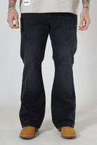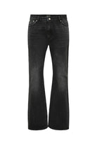 Deze bootcut-jeans in gewassen zwarte tinten zijn een veelzijdige keuze voor de dagelijkse garderobe. De denimstof heeft een perfect gebalanceerd gewicht dat comfort en stijl combineert, waardoor de broek geschikt is voor de meeste gelegenheden. De middelhoge taille zorgt voor een comfortabele pasvorm, en samen met de licht uitlopende pijpen ontstaat een klassieke look met een moderne touch. Extra details zoals het label, riemlussen en klinknagels geven het ontwerp extra karakter.