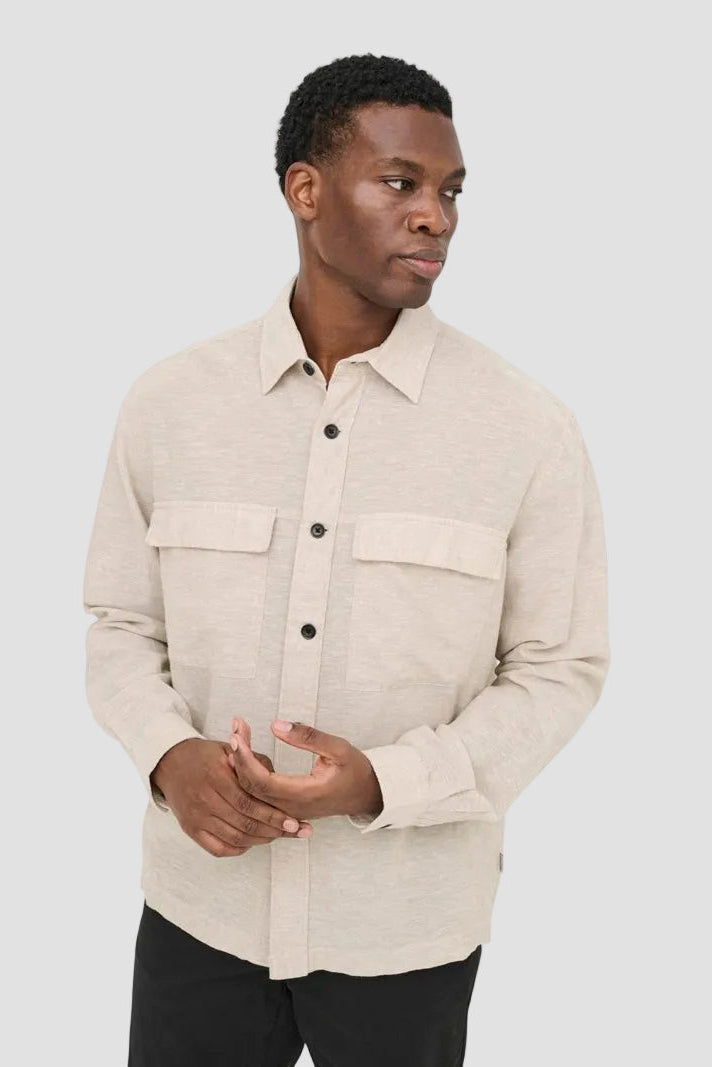 Caiden LS Overshirt Linen Blend Chinchilla