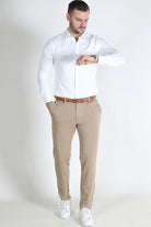 Deze slim fit chino biedt een moderne en comfortabele pasvorm, ideaal voor dagelijks gebruik, zowel op school als op het werk. De stof voelt zacht en rekbaar aan, wat zorgt voor extra draagcomfort. Dankzij de riemlussen kun je gemakkelijk een riem toevoegen voor een nette afwerking.