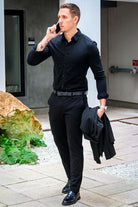 - Klassiek ontwerp: Het overhemd heeft een klassieke kraag en knoopsluiting die zorgen voor een stijlvolle en professionele uitstraling. De zwarte kleur maakt het overhemd ook geschikt voor formele gelegenheden en is te combineren met veel verschillende outfits..