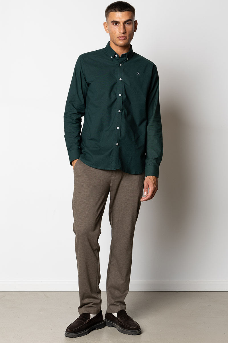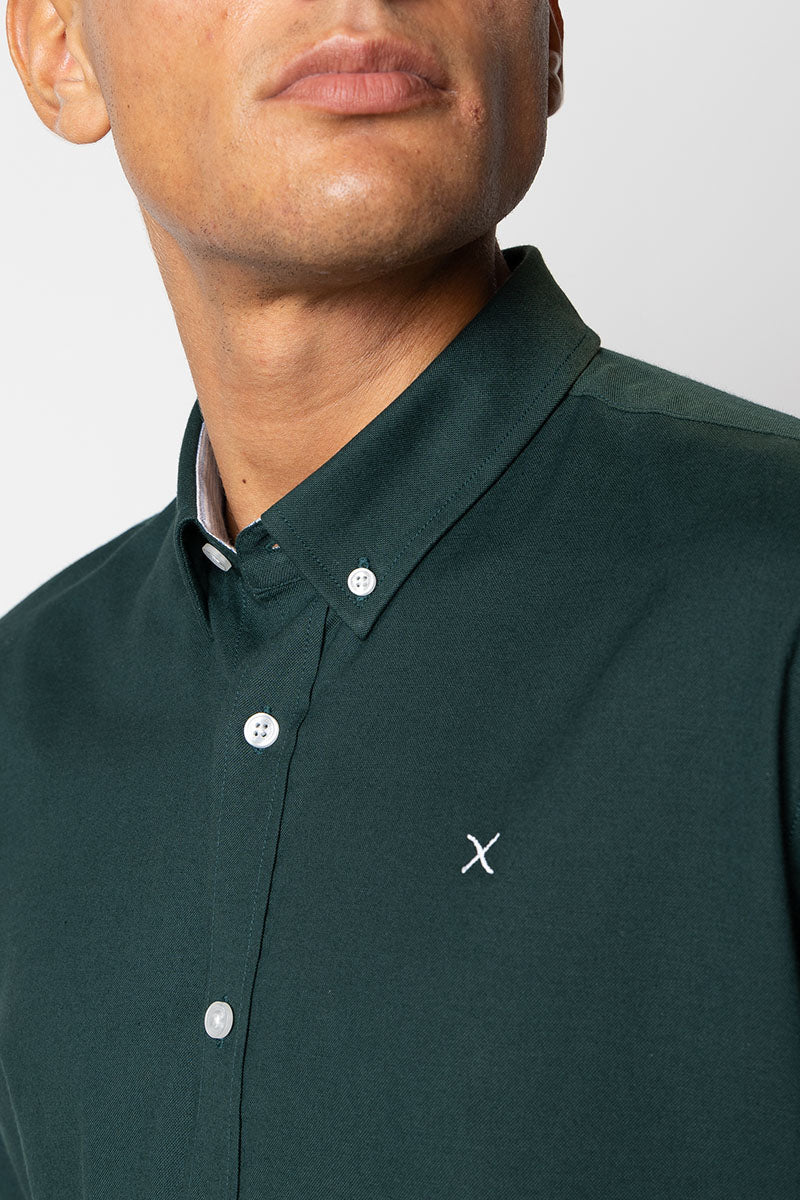 Oxford Stretch Plain L/S Deep Green