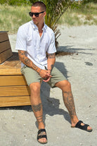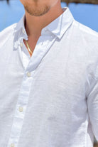 - Kortem mouw linnen overhemd met klassieke kraag.
