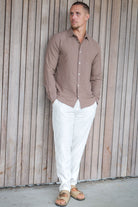 - Het overhemd heeft een klassiek ontwerp met een traditionele kraag en lange mouwen die indien gewenst kunnen worden opgerold