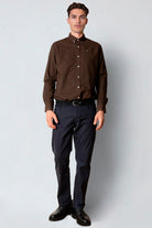 - Het overhemd heeft een button-down kraag en een ronde zoom.