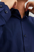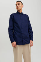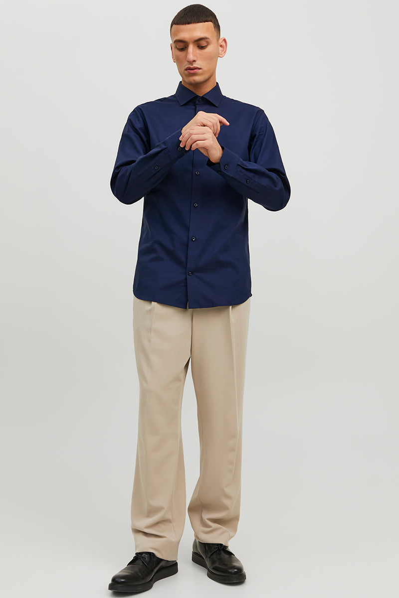 - Donkerblauw overhemd met lange mouwen in slim fit