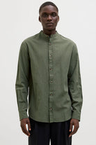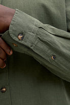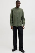 - Donkergroen linnen overhemd met lange mouwen en comfort fit
