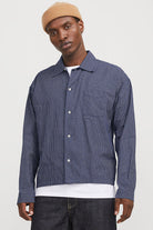 - Het overhemd heeft lange mouwen en knoopsluiting